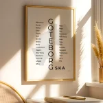 Alla våra posters finns i storlekarna 21×30 (A4), 30×40, 40×50 samt 50×70. Vill du ha tavlan i en annan storlek, eget bakgrundsmotiv eller byta ut något ord – kontakta oss gärna på [email protected].