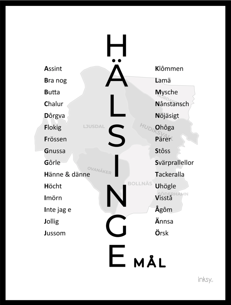 ✅ Hälsingland dialekttavla. Dialekten kallas främst för Hälsingemål men även Hälsingska förekommer. Här finner du många härliga ord och uttryck på våra dialekttavlor! Vilka känner du igen?