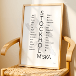 Alla våra posters finns i storlekarna 21×30 (A4), 30×40, 40×50 samt 50×70. Vill du ha tavlan i en annan storlek, eget bakgrundsmotiv eller byta ut något ord – kontakta oss gärna på [email protected].